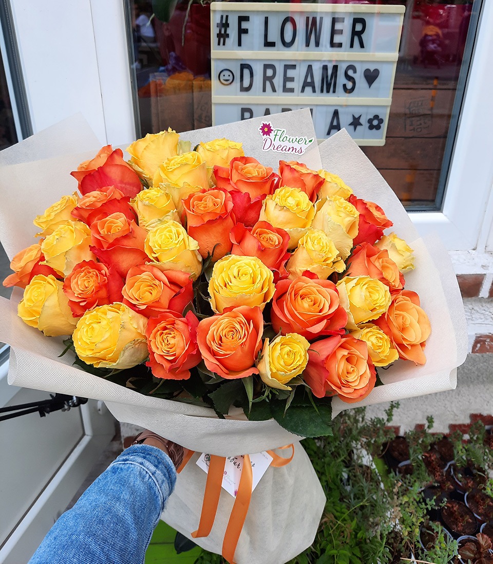 Когато наистина искате да впечатлите някого – букет с 35 броя оранжеви и жълти рози ще омае всеки. Букет за рожден ден, за благодарност или просто така ще внесе щастието, което всеки заслужава!