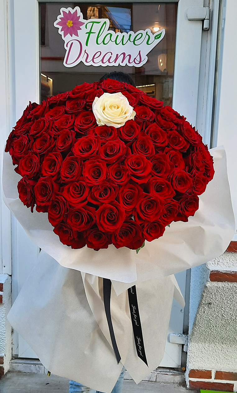 Подарете на любимата си букет от 101 рози, за да я накарате да се чувства без съмнение най-специалната жена на света! Стилно аранжирани и впечатляващи рози, които гарантираме, че ще очароват всеки, които ги получи! Изпратете любовта, която Вашите любими хора заслужават днес!