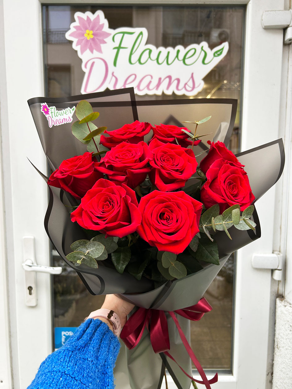 Подарете любов с този букет от 9 червени рози. Поръчайте от Flower Dreams и ние ще ги доставим до дома или офиса като гарантираме, че ще останат свежи и красиви. Изпратете любовта, която Вашите любими хора заслужават днес!